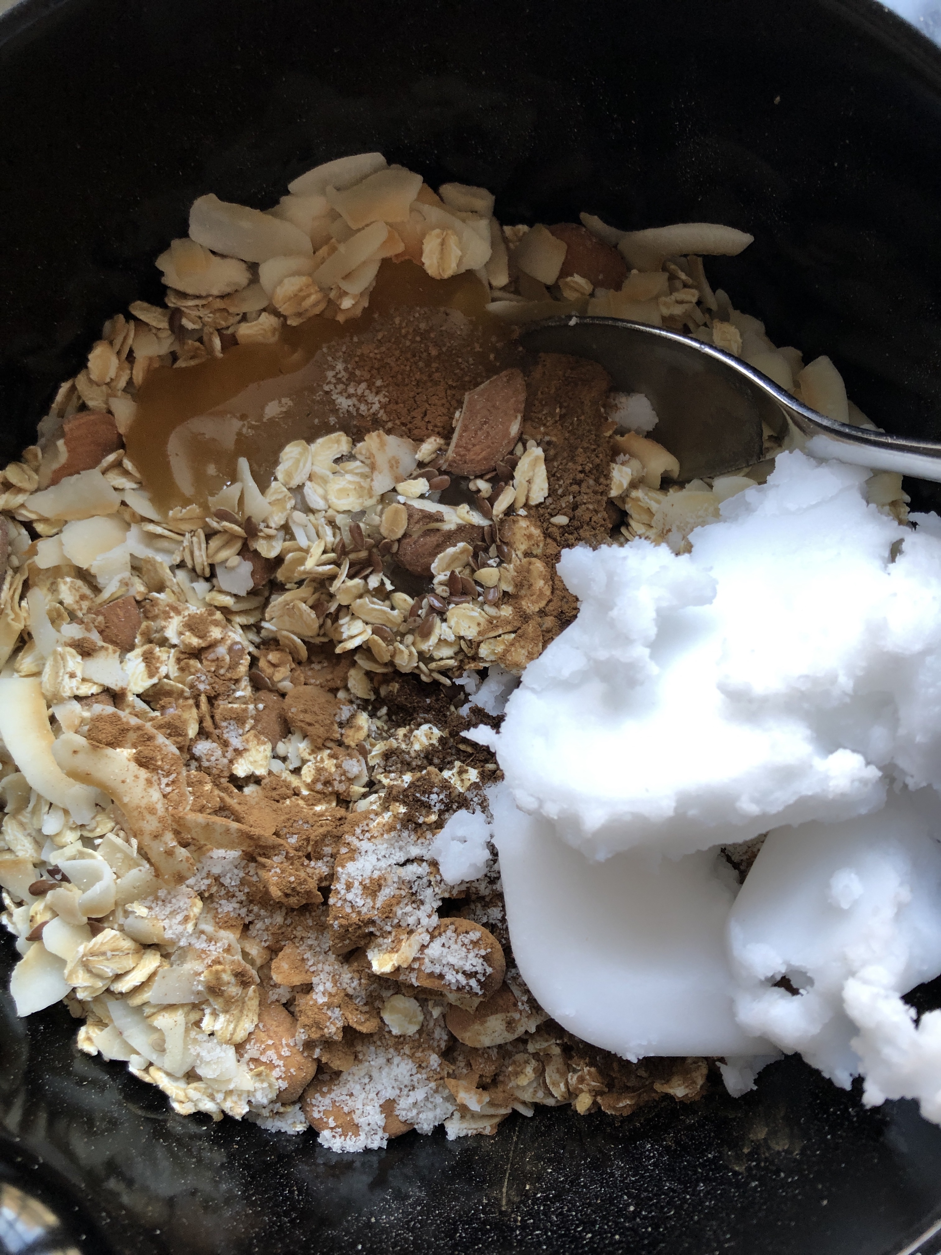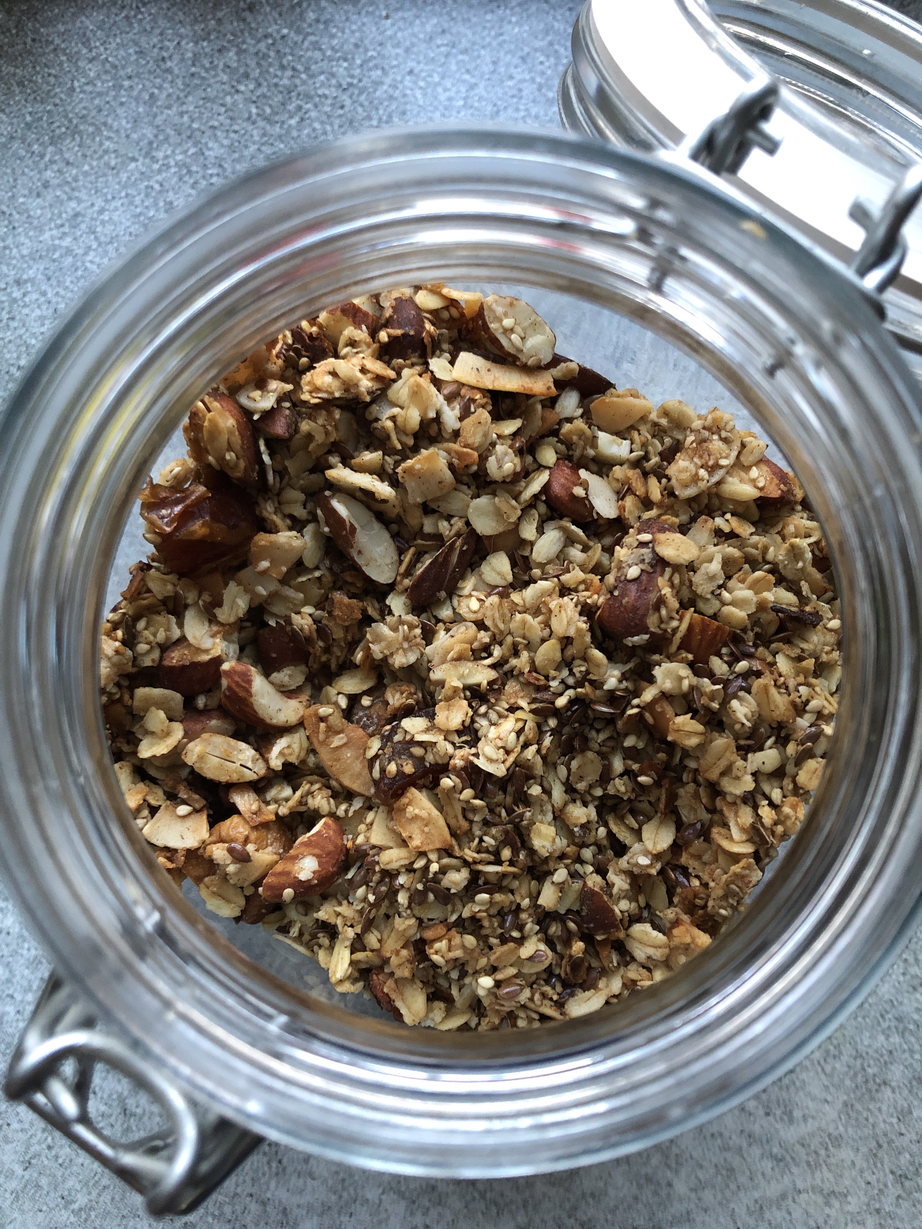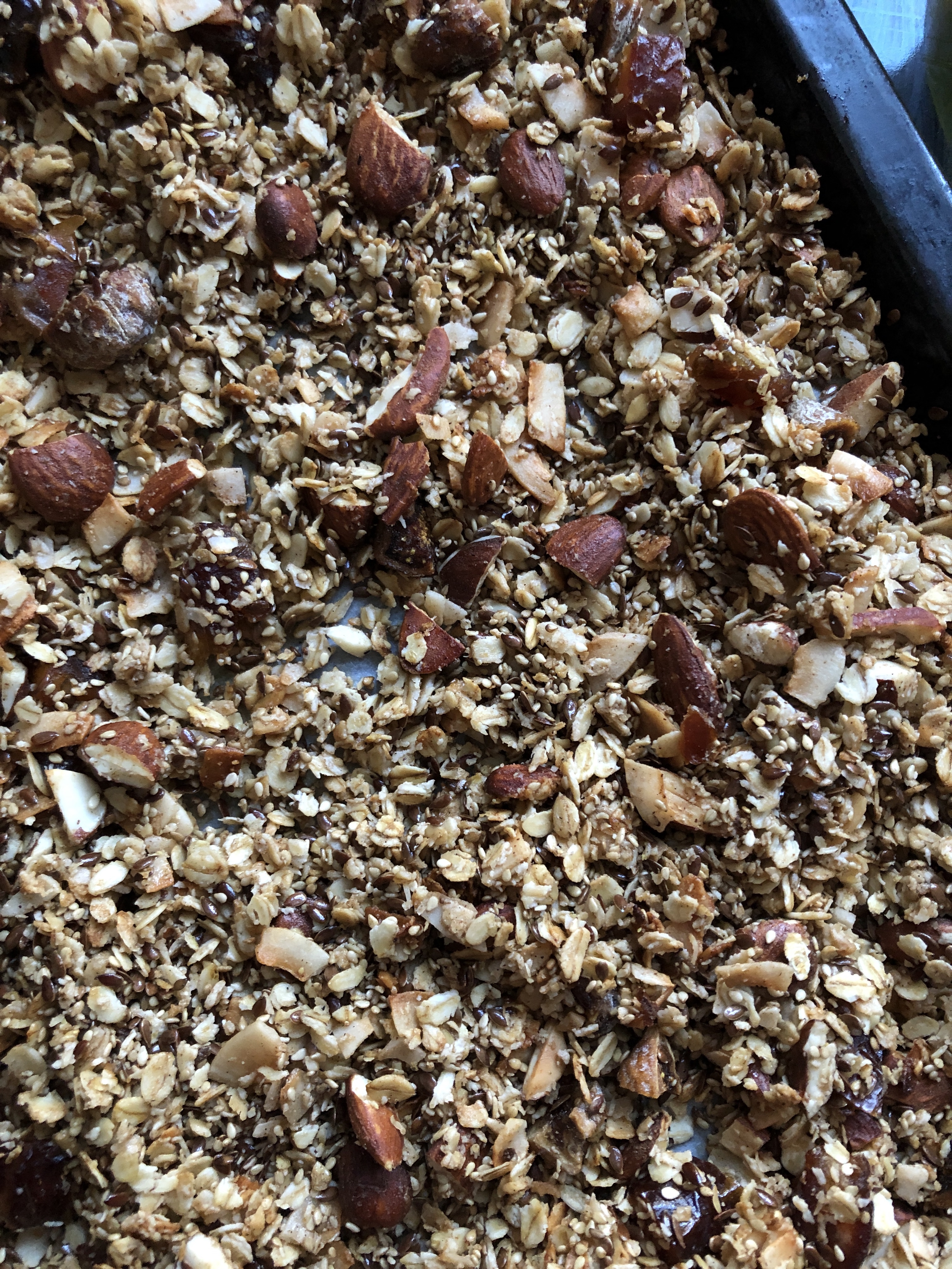 De her januar morgener er noget mørke, men en sprød granola kan højne humøret gevaldigt. Og så er det også et godt sted at få brugt det tørrede frugt, som man måske købte rigeligt af til jul.. 😉 Det tilmed NEMT at lave, så det er bare om at komme i gang.