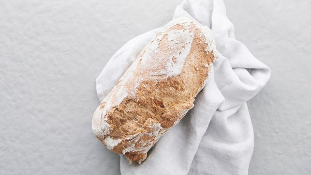 Lyst surdejsbrød bagt på surdej, sorghummel, hirsemel, loppefrøskaller, atlanterhavssalt, og en lille smule stødt koriander og kardemomme.